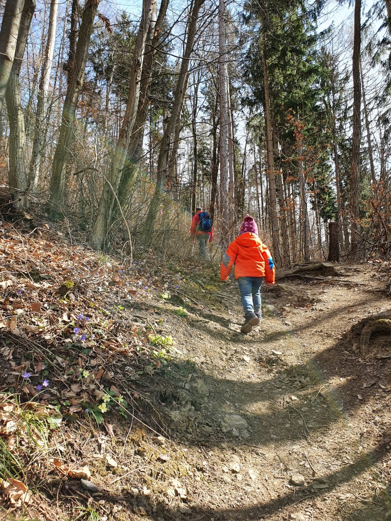 Wir parken bei der Feuerwehr bzw. beim Friedhof am Ende des Ortes. Von dort ist es nur ein Katzensprung bis zum Wanderpfad, welcher sehr gut ausgeschildert ist. Wir nehmen immer den steilen Pfad hinauf zur Burg, welchen wir Räuberpfad getauft haben, weil er so abenteuerlich zu gehen ist. Wem der Weg zu steil ist, kann auch den Güterweg hinaufmarschieren (kinderwagentaugliche Variante).