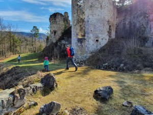 Nach etwa 20 Minuten erreicht man die Burg. Von oben hat man einen wunderschönen Blick ins Tal und einige Türmchen zu besichtigen. Wie gesagt, handelt es sich um eine Burgruine, also bitte keine intakte Wehranlage erwarten. Dem Mittelalterfeeling steht aber dennoch nichts im Weg.