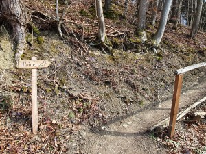 Wegbeschaffenheit: Entweder steil und wurzelreich über den Waldweg oder kinderwagentauglich über die geschotterte Forststraße