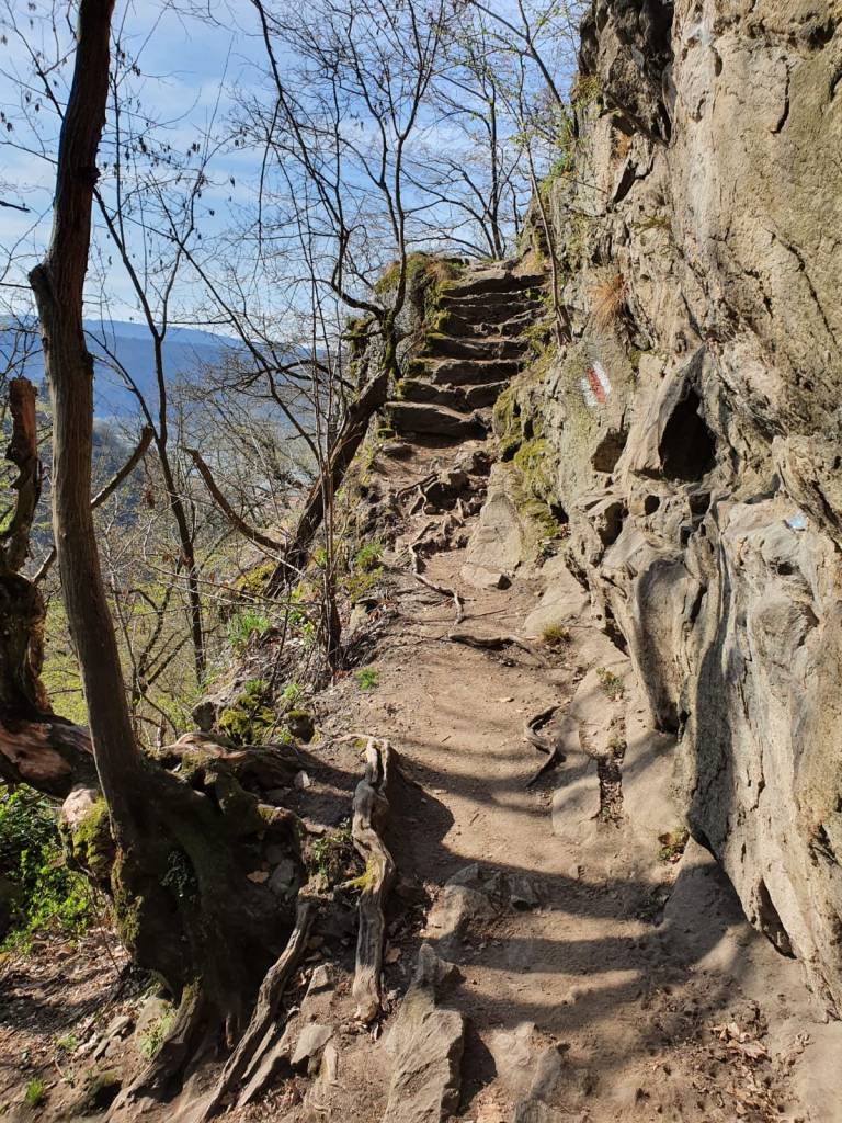 Über die Fesslhütte, welche zur Zeit geschlossen ist, und die Starhembergwarte gelangen wir nach insgesamt 2 1/2 zur Burgruine Dürnstein. Auf Grund des schönen Wetters treffen wir hier auf unglaublich viele Menschen und lassen daher die Ruine links liegen. Auch beim Abstieg zurück in die Stadt über den Eselsteig herrscht reges Treiben. Viele Sonntagstouristen tummeln sich mit fragwürdigem Schuhwerk auf den steilen Stufen. Das Schild „gutes Schuhwerk erforderlich“ dürften die wenigsten Besucher gelesen haben.