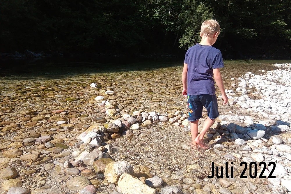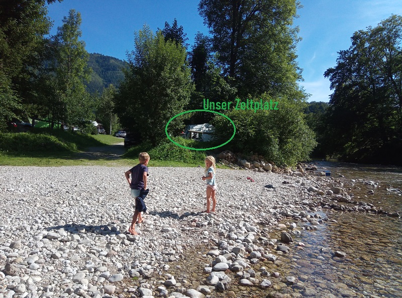 Wir haben wirklich Glück. In Lunz finden wir einen überschaubaren Campingplatz direkt an der Ois. Unsere Parzelle liegt abseits der anderen Zelte direkt am rauschenden Bach etwas erhöht, sodass ich das geschotterte Bachbett herrlich vom Zeltplatz überblicken kann, während die Natuakinda sich mit den anderen Kindern am Wasser vergnügen. So kann ich das Zelt aufbauen, kochen, lesen etc. ohne die Kinder aus dem Auge zu verlieren. Einfach perfekt.