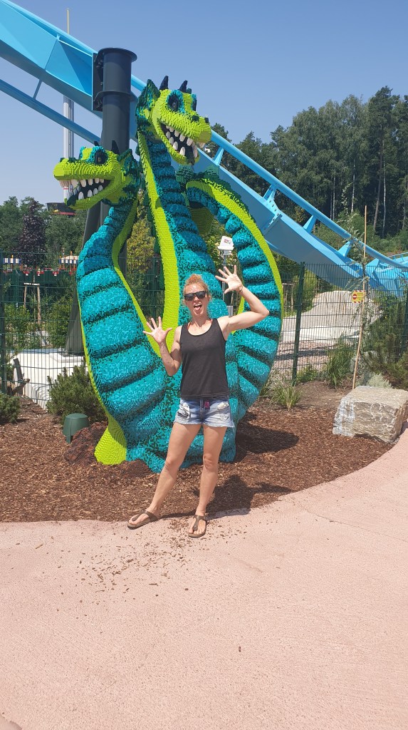 Außerdem wird das Legoland ständig erweitert. Seit unserem letzten Besuch 2021 ist das Areal MYTHICA hinzugekommen. Dieser Bereich hat uns besonders gut gefallen. Die fantasievollen Figuren aus Lego, eine Station zum Legobauen, eine unglaublich coole neue Achterbahn, einen Fire & Ice Tower und neuen Rutschturm. Unsere Tochter ist mit dem Turm unglaublich oft gefahren. Um mit dem rasanten Flügellöwen Maximus fahren zu können, mussten mein Mann und ich uns leider aufteilen. Tipp für die Zukunft: Nehmt bei Achterbahnen eure Kids mit in den Wartebereich. Wenn sie dann nicht mitfahren können / wollen, können sie einfach beim Ein- und Ausstieg auf euch warten. Da die Fahrt meist nicht länger als 5 Minuten dauert ist das durchaus okay für die Kleinen. Dies ist auch bei der Drachenbahn in der Ritterwelt denkbar.