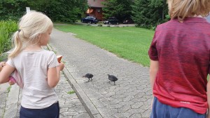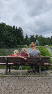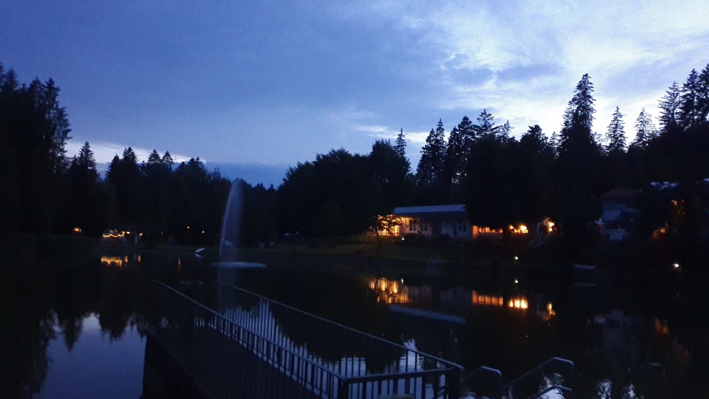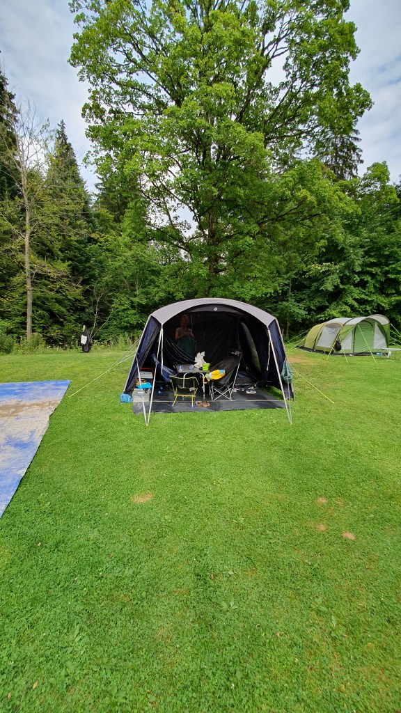 Die eigentliche Zeltwiese mit Stromanschluss liegt direkt am idyllischen Waldsee. In der Dämmerung muss man daher mit vielen Gelsen rechnen. Das Panorama entschädigt einen aber sehr. Einziges Manko ist, dass die Sanitäranlagen am anderen Ende des Sees liegen. Unsere Natuakinda gehen gerne abends und nachts aufs Klo … das war dann immer etwas mühsam. Alternativ kann man das Zelt auch neben dem Spielplatz in der Nähe der Sanitäranlagen aufstellen. Auf Grund des Lärms wollten wird das allerdings nicht.