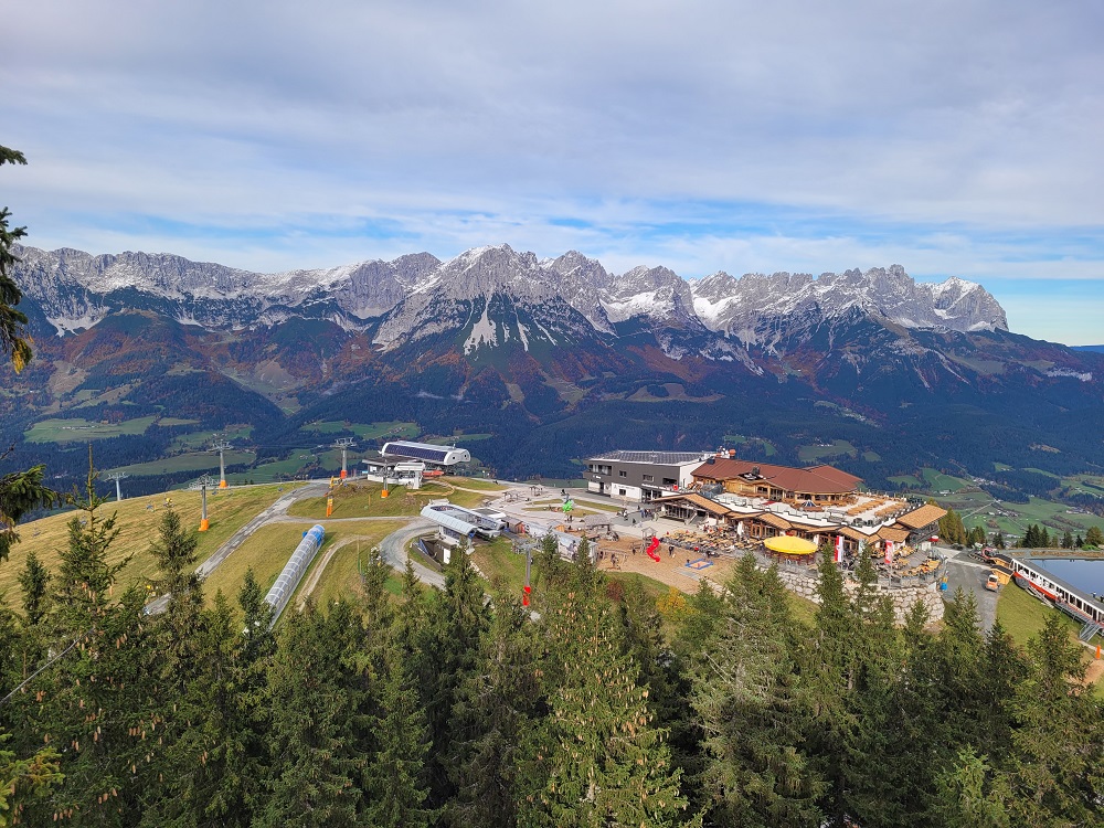 Wir „einigen“ uns darauf nach Ellmau zu fahren. Dort gibt es eine Bergbahn, welche um diese Jahreszeit noch in Betrieb ist. Schon bei der Bergfahrt werden wir von der Sonne begrüßt und genießen das wunderbare Alpenpanorama. Oben angekommen erwartet uns Ellmi´s Zauberwelt. Die Geschichte kann ich hier nicht wiedergeben, da ich zwar mit den Natuakindan alle Stationen meistere, mich aber mehr auf die Aussicht, als auf das Märchen konzentriere. Wir klettern auf riesige Stühle, balancieren in den Baumwipfeln über Netze, spielen im Sand, klettern auf ein Holzschiff und rätseln welche Berggipfel man von hier aus erkennen kann.