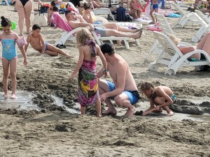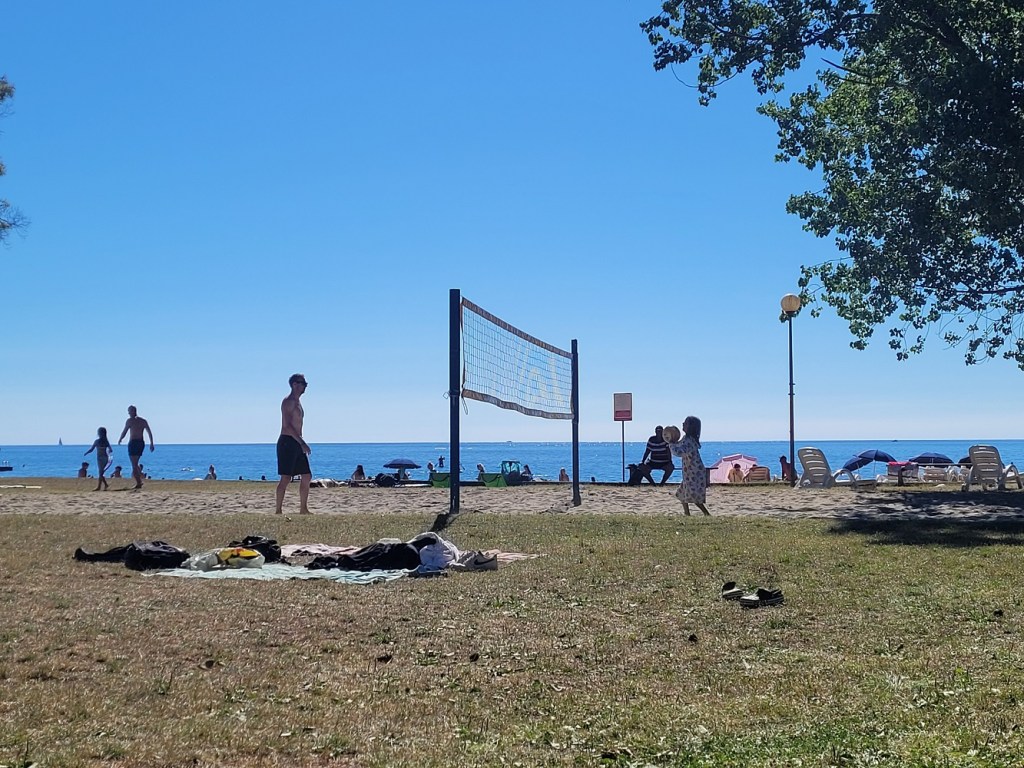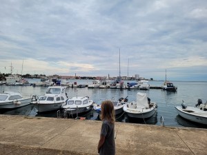 Wir starten mit einem gemütlichen Frühstück (Gebäck aus der nächstgelegenen Bäckerei) und einer Runde Schwimmen im Pool – den haben wir für uns ganz allein … zumindest für 5 Minuten. Danach geht es zum Sandburgenbauen an den Sandstrand von Umag, wo wir uns auf Grund des Windes über die hohen Wellen freuen. Den Abend verbringen wir in Umag. Da der Bummelzug sehr teuer ist, fahren wir mit dem eigenen Auto und finden einen kostenlosen Parkplatz.
