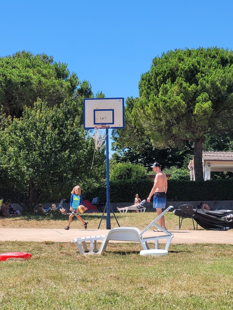 Der Campingplatz ist sauber und gepflegt. Die Sanitäreinrichtungen sind älter, werden aber mehrmals täglich gereinigt. Das Restaurant ist modern und gut, aber bietet keine einheimischen Gerichte, sondern teures Fastfood. Die Bar hat immer geöffnet. Der Pool ist ebenfalls sauber, in einem bestimmten Zeitraum gibt es Fitnessangebote und einen Bademeister. Zum nächsten Strand braucht man zu Fuß ca. 15 Minuten. Die Parzellen sind großzügig und schattig angelegt. Möglichkeiten etwas einzukühlen gibt es nicht – man ist auf die eigenen Kühlung angewiesen. Die Stadt Umag kann man mit einem Bummelzug anfahren – dieser ist aber sehr teuer.
